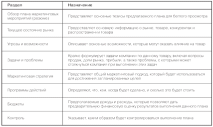 Рис. 10.1 - Структура плана маркетинговых мероприятий