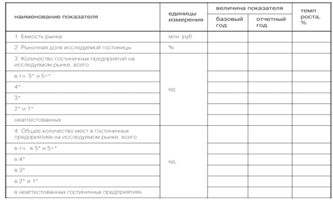 анализ текущей ситуации, емкости, динамики, структуры рынка гостиничных услуг;