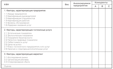 и нескольких конкурентов проставляются оценки по каждому фактору в выбранной