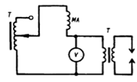 Испытательное напряжение во вторичной обмотке трансформатора Т устанавливается автотрансформатором Т по вольтметру V. При пробое в первичной обмотке Т будет проходить большой ток; при этом срабатывает максимальный автомат МА и трансформатор отключается.