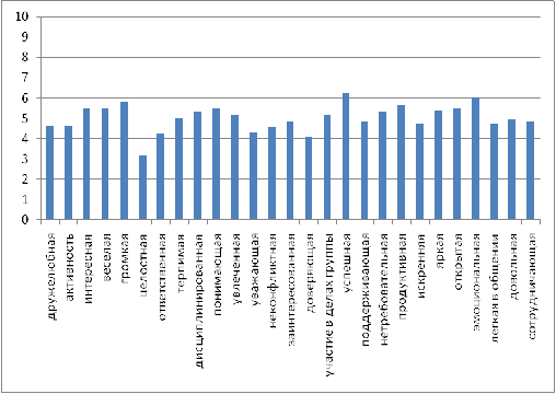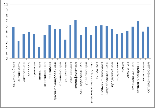 открытая(5,49±0,7), понимающая (5,45±0,7), дисциплинированная (5,33±0,6),
