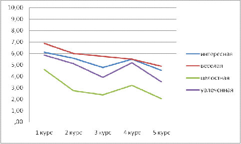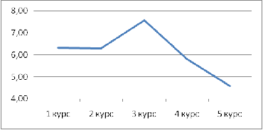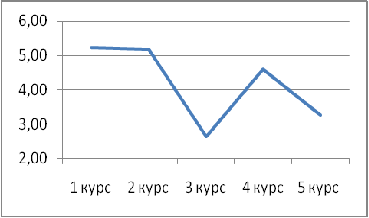 группе, с максимальной выраженностью на 1 курсе, минимальной - на 5 курсе.