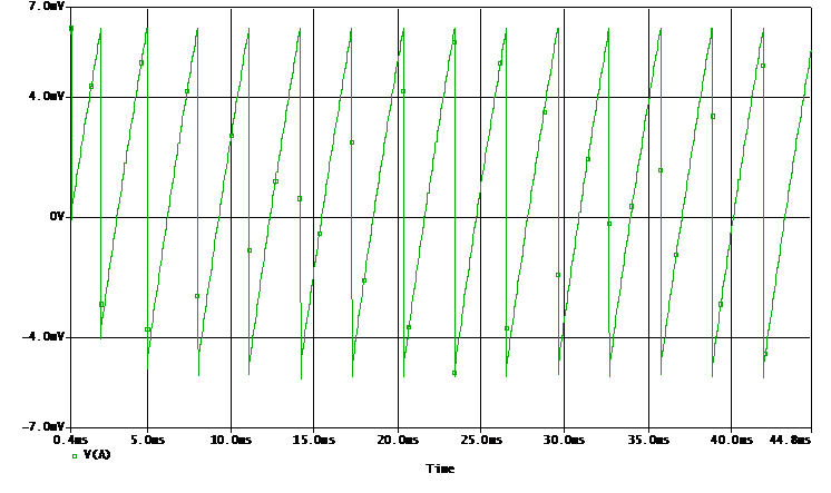настроить так, чтобы в точке "А" напряжение имело пилообразный вид