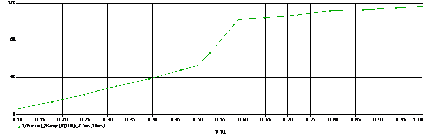 Рисунок 6 - График зависимости частоты от входного напряжение