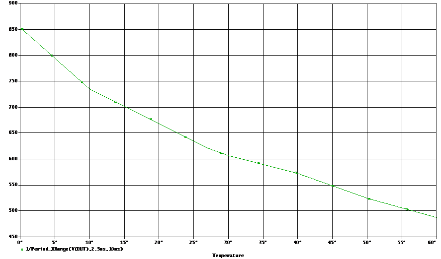 Зависимость частоты от температуры при фиксированном входном напряжении