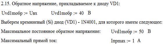 D1 - кремниевый диод 1N4001 фирмы "Various" имеющий обратное напряжение Uобр = 50 В и прямой ток Iпр = 1 А;