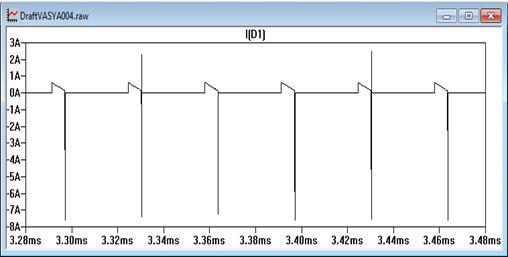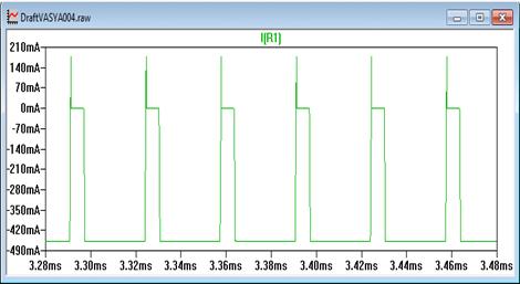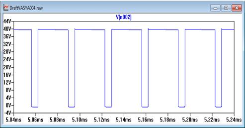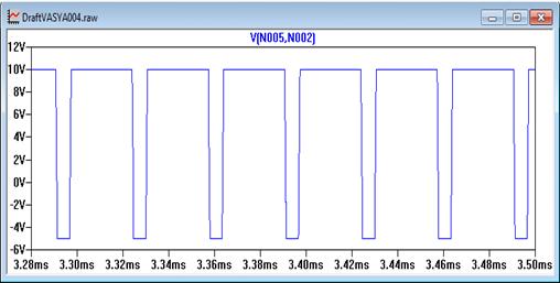 V2 - импульсное напряжение управления равное V2 = 10 В на верхнем уровне и V2 = -5 В на нижнем уровне, выдающее импульсы с частотой преобразования 30 кГц и длительностью tи = 26.64 мкс;