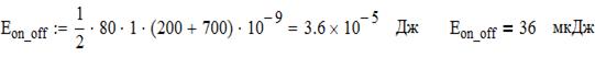 UCEmax = 80 В; ICmax = 1 А; ton = 200 нс; toff = 700 нс. Тогда энергия: