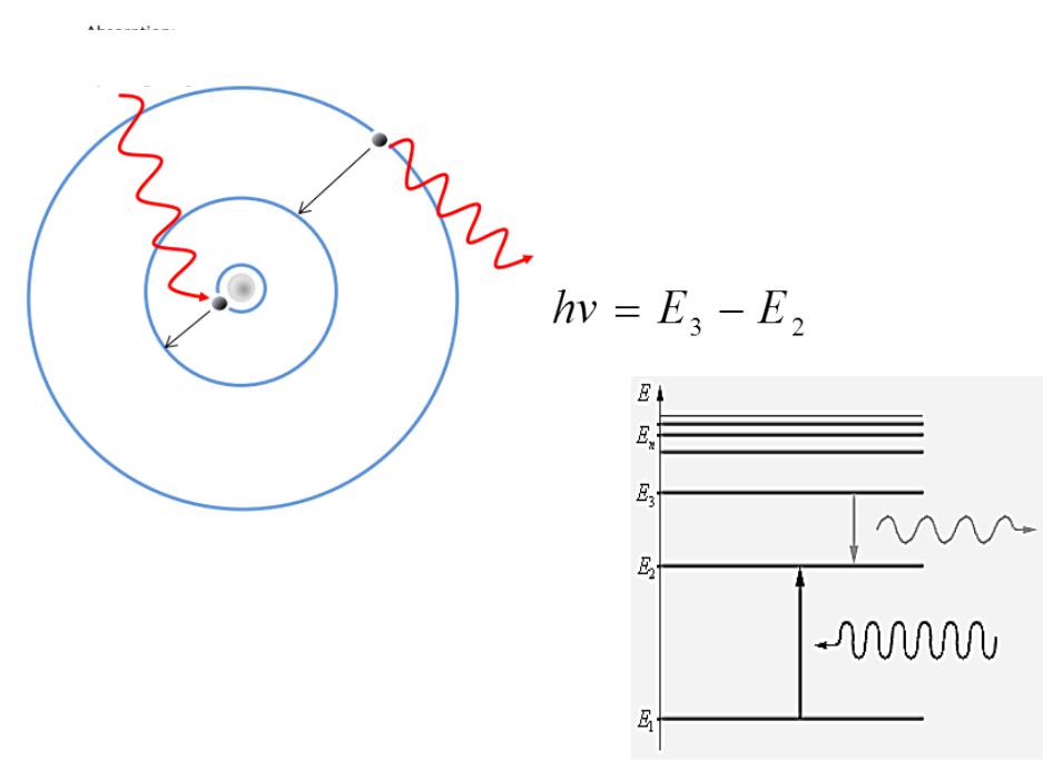 При поглощении света атом переходит из стационарного состояния с меньшей энергией в стационарное состояние с большей энергией.