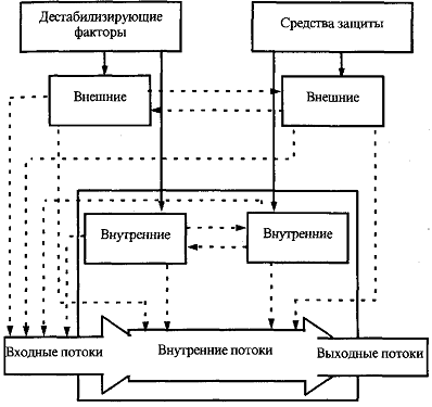 стечения обстоятельств, когда в силу дестабилизирующих воздействий на защищаемую