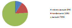 удельный вес работников с высшим образованием составляет 76%, а сотрудников с