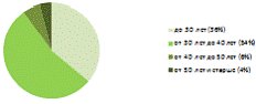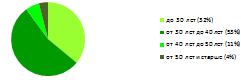 Анализ рисунков 3 и 4 показал, что за исследуемый период с 2012 по 2014 гг.. произошло "омоложение" персонала организации. Так, например, численность работников в возрасте от 40лет до 50 лет снизилась с 11% в 2012 г. до 6 % в 2014 г., в то время как численность работников в возрасте до 40 лет имеет тенденцию к росту с 53% в 2012 г. до 54 % в 2014 г.