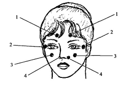 . Где находится биологически активная точка, используемая при возрастных расстройствах (переходный возраст): ) на голове, чуть выше верхнего края ушной раковины) в центре носогубной складки) на 0,5 см кнаружи от наружного угла глаз) в центре подбородка) кпереди и книзу от козелка уха в углублении