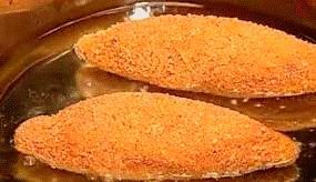 Подготовленное филе кур фаршируют сливочным маслом (оформить масло в виде палочки), смачивают в яйцах, панируют, еще раз смачивают в яйцах (льезоне), еще раз панируют в белой панировке и жарят 5-7 мин до образования поджаристой корочки. Доводят до готовности в жарочном шкафу.
