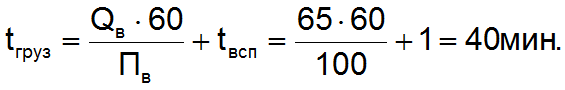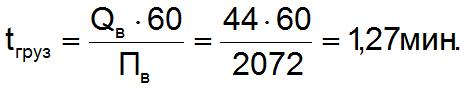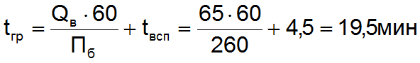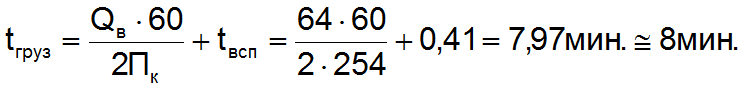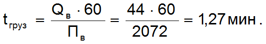 За расчетное время основной операции выгрузки принимаем время навешивания и работы вибраторов tвсп = 2 мин., совмещаемое с основной операцией выгрузки.