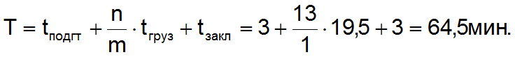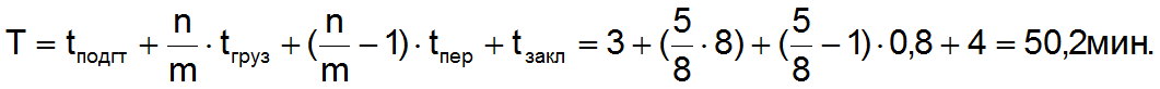 Заключительные операции tзакл - закрывание загрузочного люка, закрывание последних пар разгрузочных люков и отцепка троса лебедки - занимают 3 мин.
