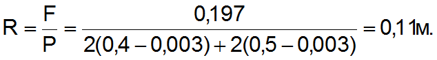 F = (A - а')(В - а') = (0,4 - 0,003)(0,5 - 0,003) = 0,197 ~= 0,2 м3.