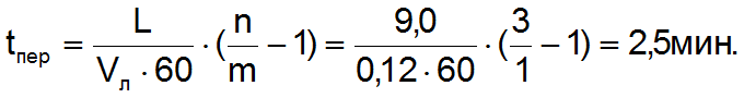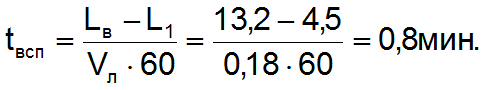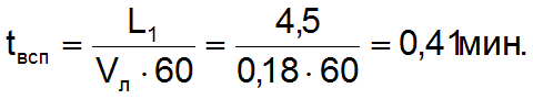 На передвижение вагонов для подачи очередного вагона под погрузку груза, учитывая, что в процессе погрузки он уже был передвинут на L1 = 4,5 м, затрачивается время: