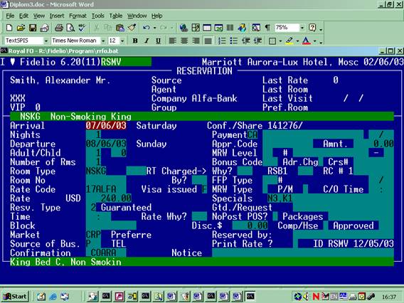 Развитие информационных технологий и их значительные функциональные возможности привели к появлению полностью интегрированных систем компьютерного управления гостиничными предприятиями. В настоящее время широко используются системы, основанные на применении сетей персональных компьютеров и мини-ЭВМ с развитым интерфейсом. Такой информационный мост позволяет обмениваться управленческой и финансовой информацией. Системы позволяют автоматизировать выполнение задач персонала и руководства гостиницы. При этом достигается взаимосвязь между различными службами гостиницы, что в значительной мере повышает эффективность и позволяет избавиться от ошибок. Вместе с этим руководство получает мощный инструмент контроля за состоянием гостиницы и финансовыми потоками, а возможности злоупотреблений персоналом гостиницы сокращаются до минимума. Следует отметить, что существует огромное количество программ обеспечения системы управления гостиничным комплексом. Только в Москве разработкой программ занимается более 600 фирм. В Приложении 5 приведен ряд специализированных программ для автоматизации в сфере туризма и гостиничного сервиса, не упомянутых в данной работе.