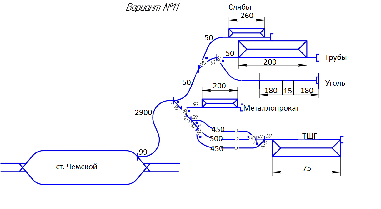 §8. Количество вагонов, подаваемых на места погрузки, выгрузки для одновременного начала проведения грузовых операций погрузка: Слябы – 15, Уголь– 12, ТШГ – 3, Металлопрокат – 12, Трубы – 12. Время на уборку вагонов с мест погрузки/выгрузки составляет 37,35.