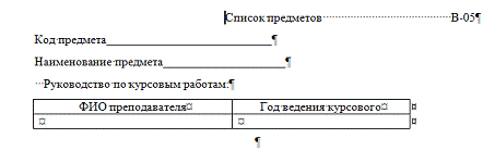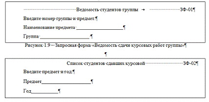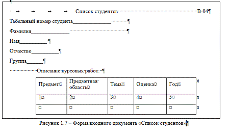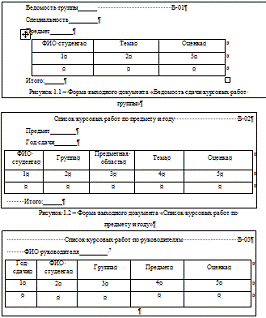 Рисунок 1.3 - Форма выходного документа «Список курсовых работ по