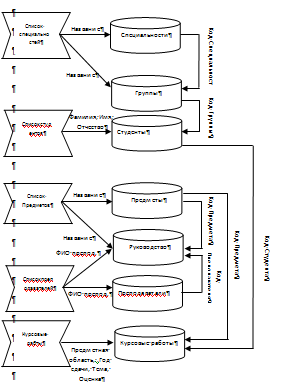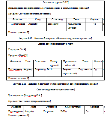 · Формирование и вывод документа «Отчет курсовых работ по предмету и году»;
