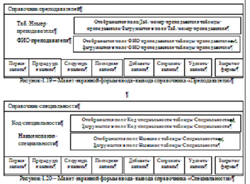 - «Список преподавателей», содержащий информацию о преподавателях в учебном заведении;