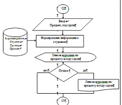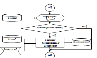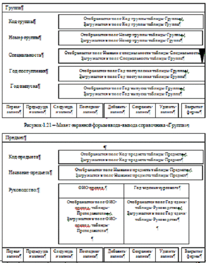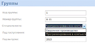 - «Список групп», содержащий информацию о группах обучающихся определённой специальности (номер, год поступления, специальность, год выпуска);
