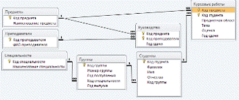 - «Список курсовых», содержащий информацию о сделанных курсовых работах студентами (предметная область, тема, оценка, год сдачи, предмет, студент);.