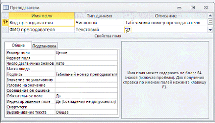 Рисунок 2.13 - Структура таблицы «Преподаватель»