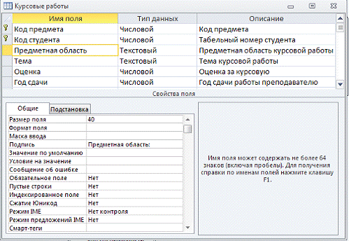 Рисунок 2.15 - Структура таблицы «Курсовые работы»