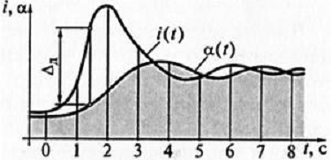 На рис.5 показано возникновение динамической погрешности Δд при протекании через магнитоэлектрический измерительный механизм быстро меняющегося тока. На рис.5 изображены кривая изменения тока i (t), текущего через механизм, и кривая изменения показаний α (t). Механическая инерционность подвижной части прибора приводит к неизбежному отставанию ее реакции при быстрых изменениях тока. Возникающая при этом динамическая погрешность Δд тем больше, чем выше скорость изменения i (t) и чем больше масса подвижной части.