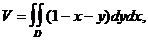 Расставляя пределы в двойном интеграле, вычислим объем: