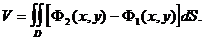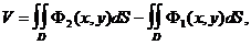 проекцией обеих поверхностей на плоскость Оху является область D, то объем V этого тела