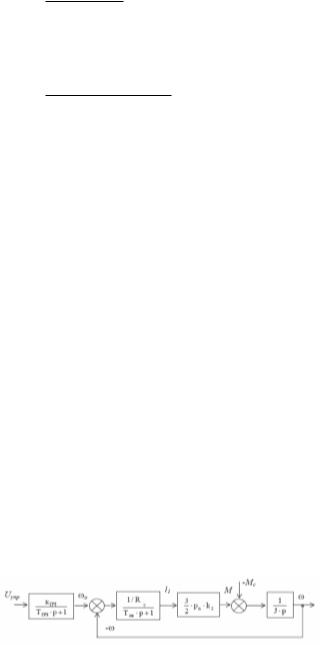 Электродвигатель представляется передаточными функциями электромагнитной и механической частей, представленных апериодическим и интегрирующим звеньями, соединенными последовательно.