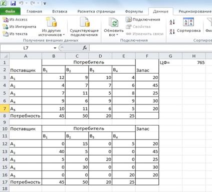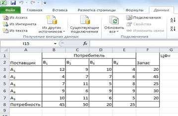 Перейдем к решению транспортной задачи в среде Excel.