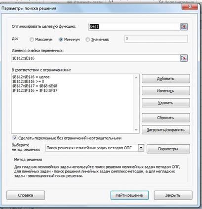 .2 Проверка оптимального решения в среде MS Excel с использованием программной надстройки «Поиск решения»