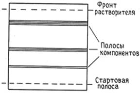 При конкретном наборе условий (сорбент и растворитель) характеристикой соединения является значение Rf .Таким образом, идентичность значения Rf “подлинного” образца (вещества сравнения) дает полное основание считать, что они одинаковы (см. предостережение ниже). Поскольку сорбенты различны, а состав смеси растворителей трудно воспроизвести точно, необходимо доказать, что значения Rf одинаковы. Для этого хроматографируют смесь и вещество, сравнивая рядом друг с другом на одной и той же пластинке, или добавляют небольшое количество вещества сравнения к отдельной пробе смеси, чтобы удостовериться в точном совпадении пятен.