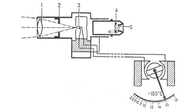 - линза; 2 - диафрагма; 3 - приемник излучения(преобразователь); 4 - окуляр; 5 - светофильтр