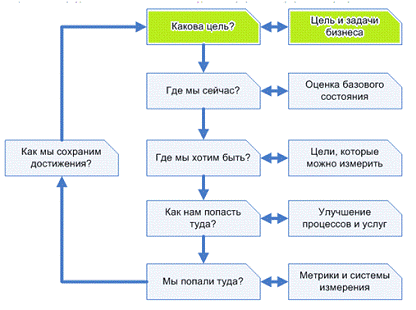 Таким образом, определены цели и задачи Бизнеса, что соответствует первому шагу в последовательности действий, рекомендованной ITIL в Модель Continual Service Improvement (рис. 5)