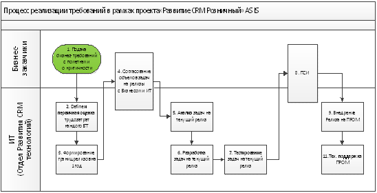 описать процесс реализации требований заказчиков к CRM-системе. Выполнение данной задачи необходимо для того, чтобы проследить, на основании каких факторов происходит фактическое развитие системы;