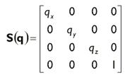 qy по оси Y и коэффициентом qz по оси Z, умножив его на следующую матрицу: