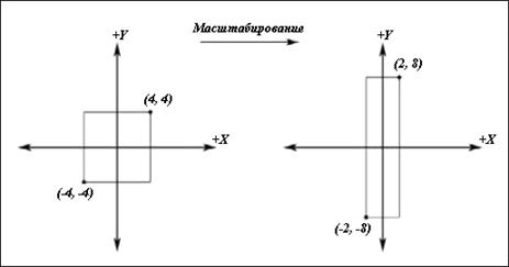 Масштабирование с коэффициентом 1/2 по оси X и коэффициентом 2 по оси Y