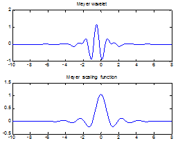 [PHI, PSI, T]=meyer(LB, UB, N) возвращает масштабирующую функцию и вейвлет-функцию