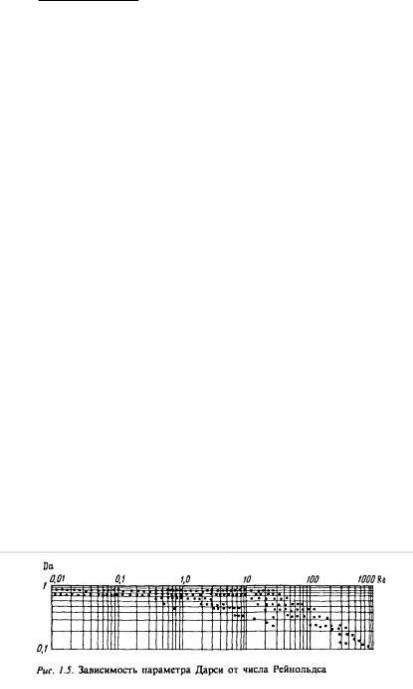 коэффициента гидравлического сопротивления от числа Рейнольдса. Однако вследствие различной структуры и состава пористых сред получить такую универсальную зависимость не удается.