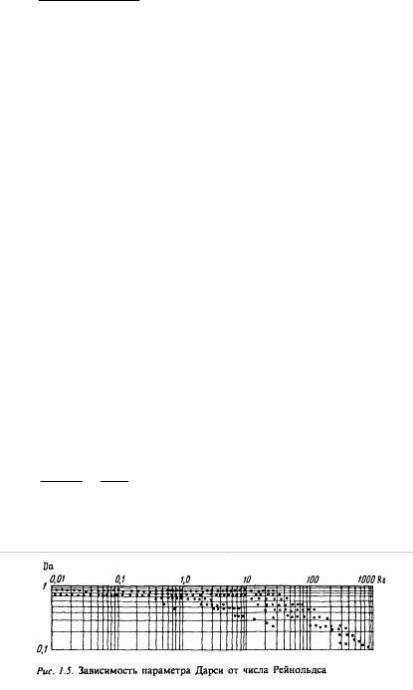 есть основания для их сопоставления с соответствующими результатами трубной гидравлики. Важно подчеркнуть, что критические значения числа Рейнольдса, подсчитанные по формуле (1.11), намного меньше тех, которые в трубной гидравлике соответствуют переходу ламинарного течения в турбулентное. Это служит одним из доводов в пользу того, что причины нарушения закона Дарси при высоких скоростях фильтрации (увеличение