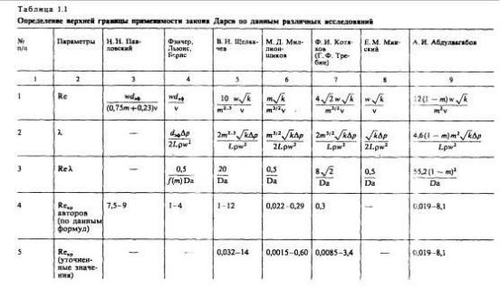 В опытах, проведенных в конце прошлого века с тонкозернистыми грунтами при малых скоростях, было обнаружено увеличение скорости фильтрации с ростом градиента давления более быстрое, что это дает линейный закон Дарси. Однако объяснение этого факта не приводилось.