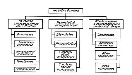 Фазовые (интерферометрические) датчики являются наиболее чувствительными к изменению показателей преломления и конструктивных размеров световода. Это обусловливает возможность эффективного измерения многих внешних воздействий, приводящих к индуцированному изменению показателя преломления, поперечных размеров и длины волоконного световода.