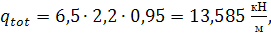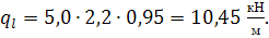 расчётная нагрузка на 1 м длины плиты при ширине 2,2 м с учётом коэффициента