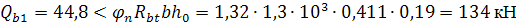 поперечной силы, воспринимаемой бетоном ![]()
